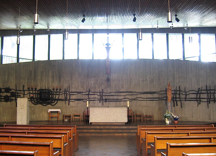 Los autores conciben la iglesia como un espacio realmente unitario en el que la relación entre oficiantes y fieles durante las ceremonias es absoluta. No existen espacios secundarios ni apenas elementos ornamentales que interfieran en esta unión. La sobriedad se manifesta también en el tratamiento casi brutalista de los muros y en la diáfana iluminación.