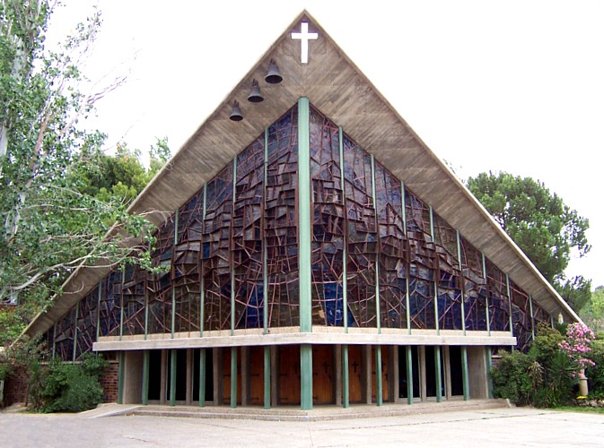 Esta capilla, proyectada por José de Yarza García y José Miguel de Yarza Nordmark en 1967 como parte del conjunto constructivo del colegio de los Marianistas, no tiene los condicionantes funcionales de una parroquia. Se plantea como una pieza aislada, cuya única finalidad es la de servir de espacio para los oficios religiosos relacionados con el colegio.