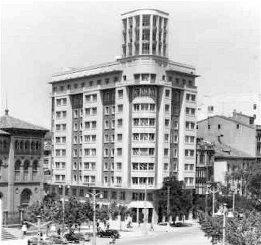 Entre ambos trabajos, en 1955, diseñó el inmueble del paseo de Pamplona 1. Su privilegiada ubicación en la trama urbana, en el arranque del paseo de Pamplona y junto a la plaza de Basilio Paraíso, lo convierten en un edificio singular y casi emblemático de su época.