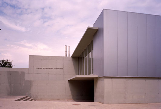 Uno de los aspectos en los que se manifestaba de manera más patente la vetustez de las viejas instalaciones era el ámbito deportivo. Para dar respuesta a las nuevas necesidades, tanto en lo cuantitativo como en cuanto a los usos renovados desde el punto de vista estrictamente educativo, Basilio Tobías proyecta en 1992 el Pabellón polideportivo universitario.