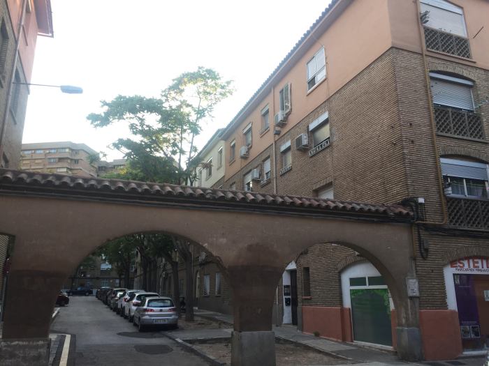 El grupo “San Jorge” (actualmente denominado “Severino Aznar”) fue la primera propuesta de la Obra Sindical del Hogar y Arquitectura en la ciudad de Zaragoza. En total se construyeron 456 viviendas en la zona de la Ciudad Jardín. Las casas se adjudicaron en régimen de propiedad mediante mensualidades de amortización a cuarenta años. Las viviendas, de ocho tipos diferentes en función del número de habitaciones, oscilaban entre las 40.500 y las 75.500 pesetas.