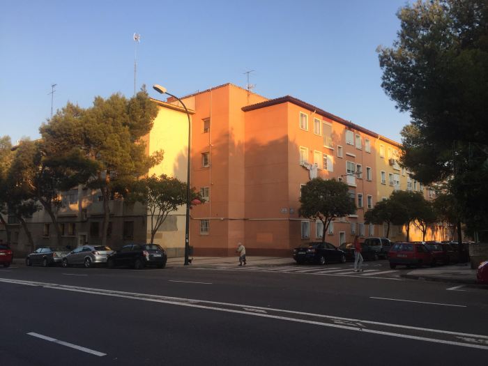 En el caso de la primera fase todas las fachadas van enfoscadas. En la segunda, en cambio, se prefiere las fachadas en ladrillo a cara vista y enfoscado sólo en la planta superior. Esta misma solución se adoptará en los futuros grupos sindicales de la ciudad de Zaragoza.