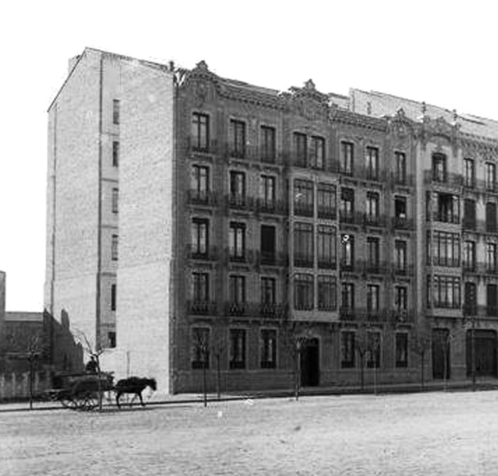 En pocos meses proyectó los inmuebles de los números 6, 10 y 12 de la calle de Joaquín Costa, además del muy próximo de la calle Isaac Peral número 22,