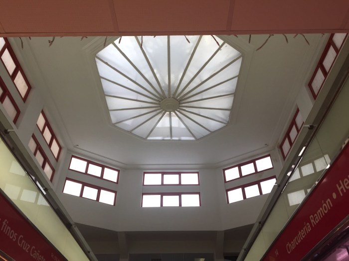 El mercado propiamente dicho tiene planta octogonal y se remata en una generosa linterna acristalada.