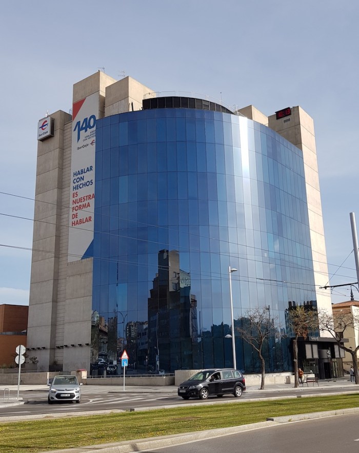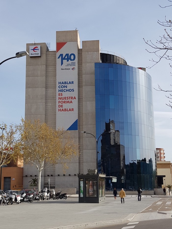 El uso de este tipo de superficies acristaladas es recurrente en las grandes sedes de las instituciones financieras de las últimas décadas del siglo XX (como se comprueba también en los edificios de Ibercaja de la plaza de Paraíso o los bancos de Bilbao y Madrid en la calle del Coso). Su intención, en contraste con las sólidas y clasicistas propuestas de décadas anteriores, es la de transmitir una imagen de modernidad y diafanidad que atraigan a un cliente que ya no ve a las instituciones bancarias sólo como un lugar para el ahorro sino también para el consumo.